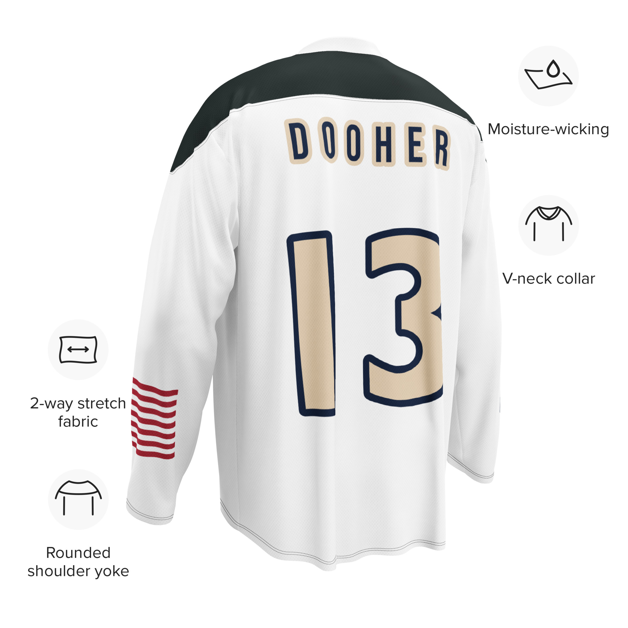 This light practice jersey is built for performance and team pride. The front displays the Pond logo in OG GREEN, while the back features DOOHER and #13. Lightweight, moisture-wicking fabric keeps it comfortable through training, scrimmages, or casual wear.