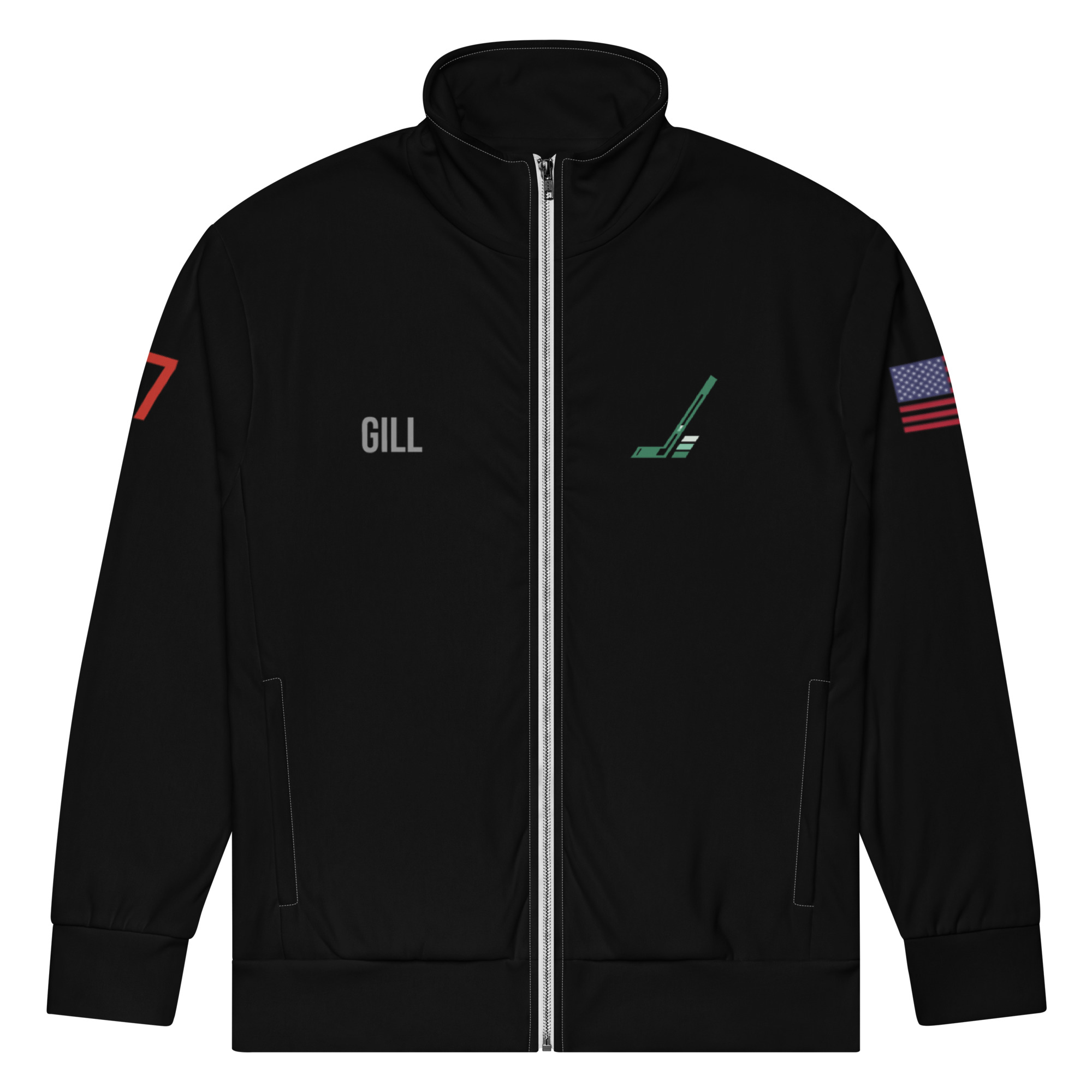 This track jacket delivers performance, warmth, and clean player-specific details. The front features GILL with the Pond logo in OG GREEN, while the right sleeve is marked with #17. Made from recycled materials and finished with a brushed fleece interior, this jacket combines comfort with durability. The relaxed fit and premium-quality zippers make it a versatile layer for workouts, travel, or everyday wear.
