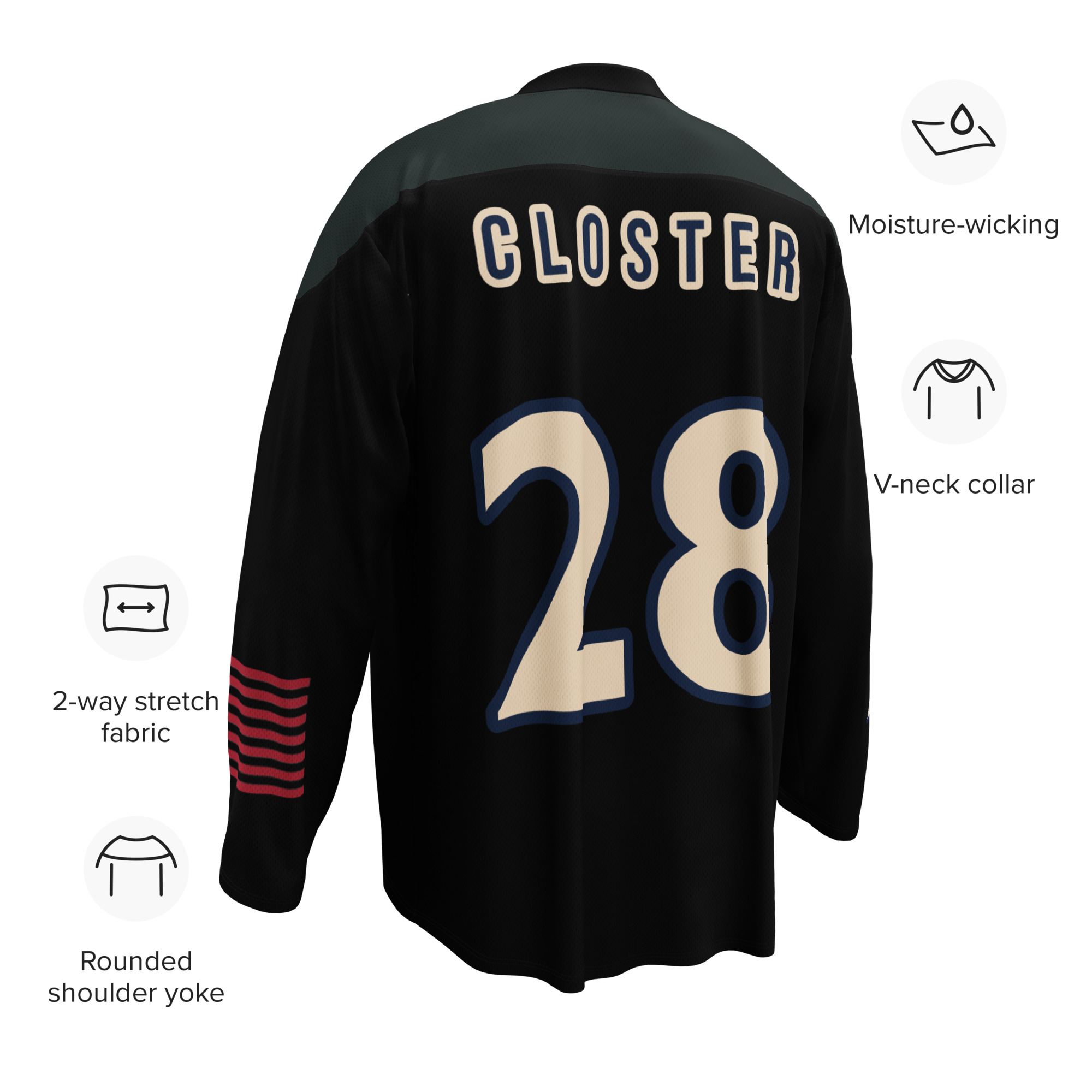 This practice jersey is built for performance and team pride. The front displays the Pond logo in OG GREEN, while the back features CLOSTER and #28. Lightweight, moisture-wicking fabric keeps it comfortable through training, scrimmages, or casual wear.