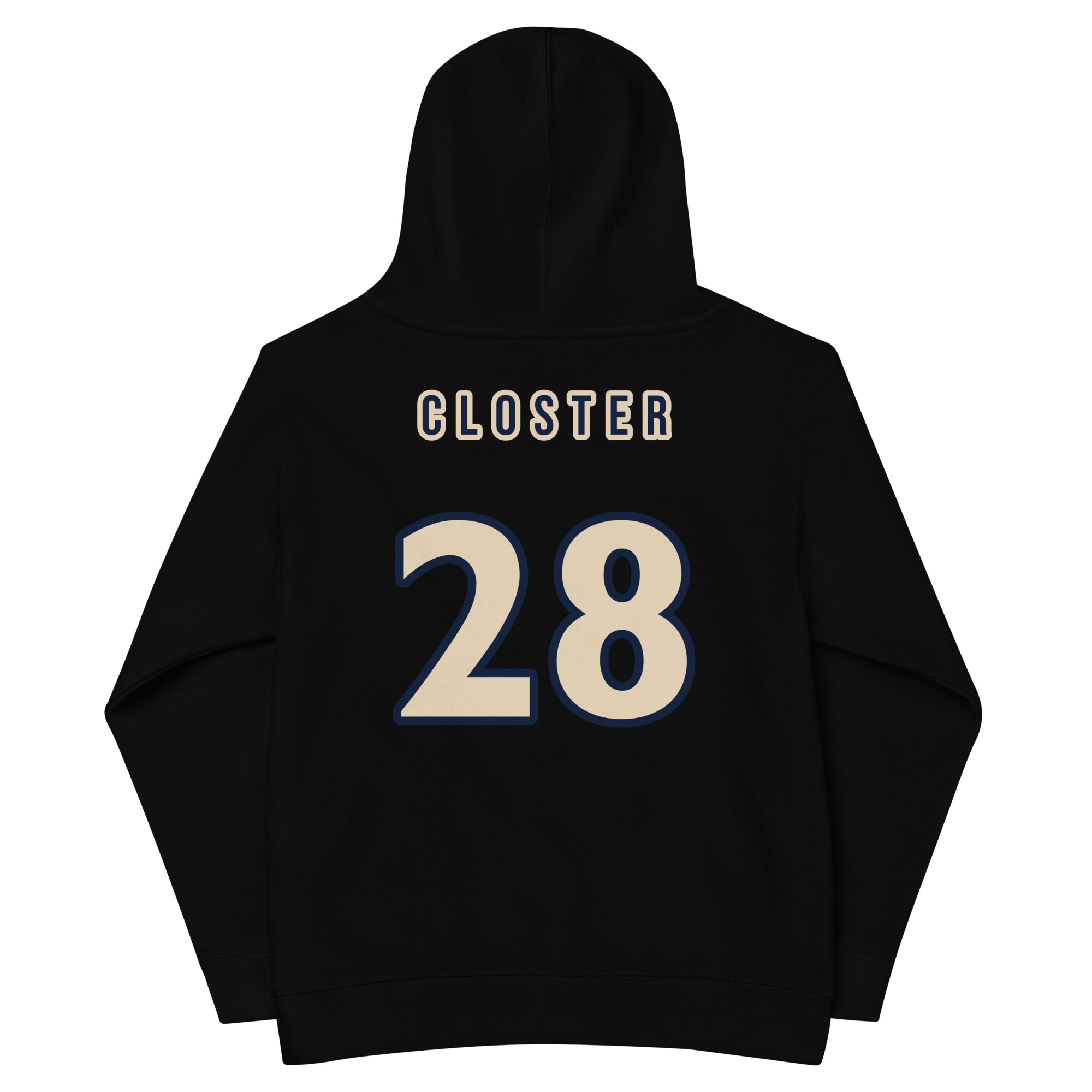 This hoodie combines comfort with player-specific style. The front is embroidered with the Pond logo in DESERT RED, while the back features CLOSTER and #28. Soft fleece and durable construction make it the perfect everyday layer for school, practice, or travel.