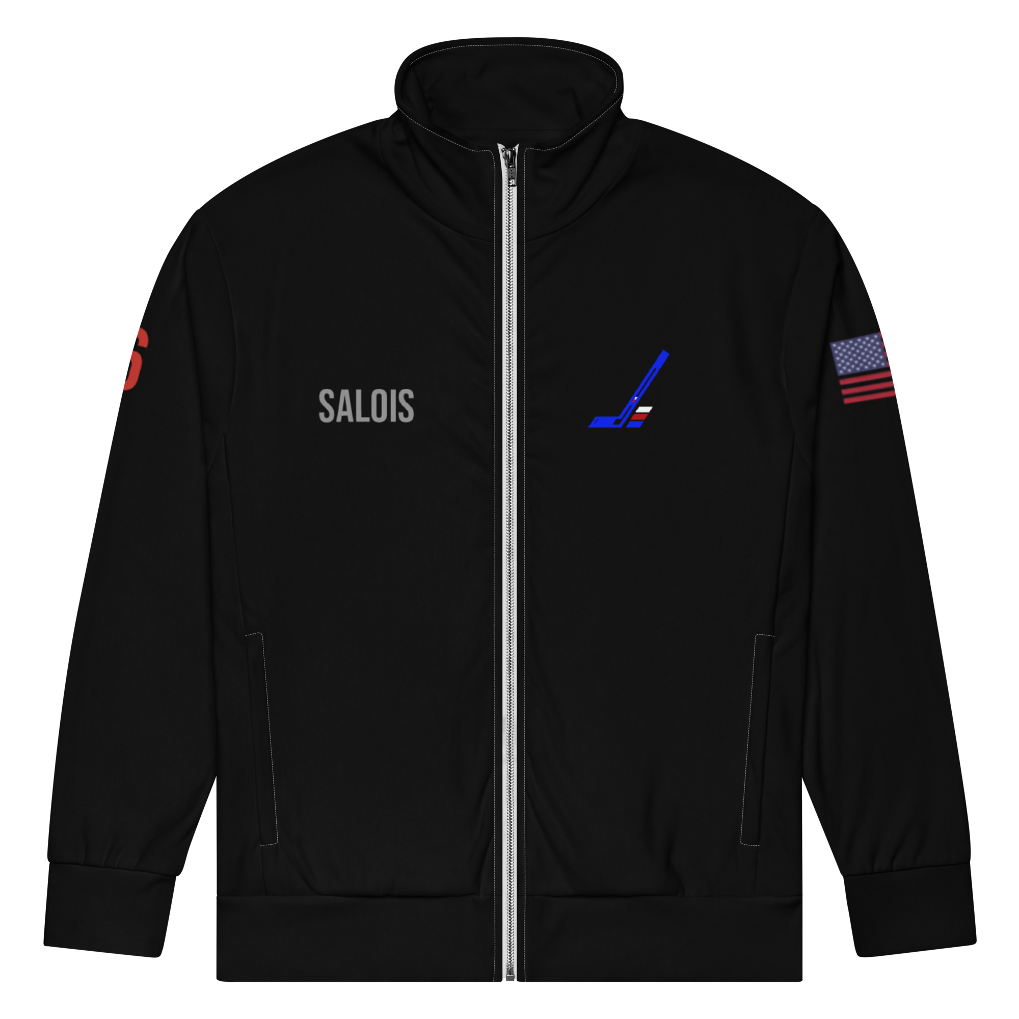 This track jacket delivers performance, warmth, and clean player-specific details. The front features SALOIS with the Pond logo in PATRIOT, while the right sleeve is marked with #6. Made from recycled materials and finished with a brushed fleece interior, this jacket combines comfort with durability. The relaxed fit and premium-quality zippers make it a versatile layer for workouts, travel, or everyday wear.